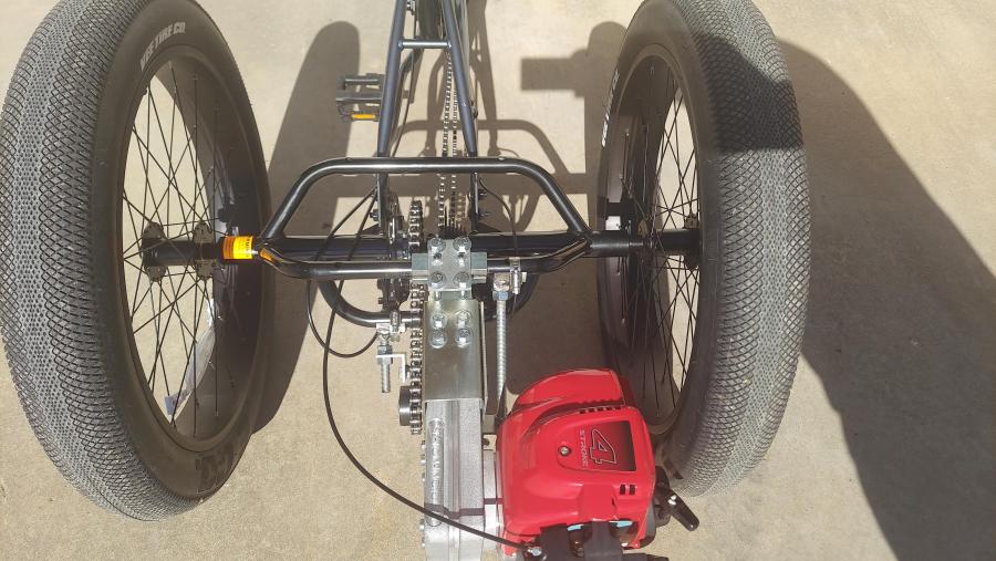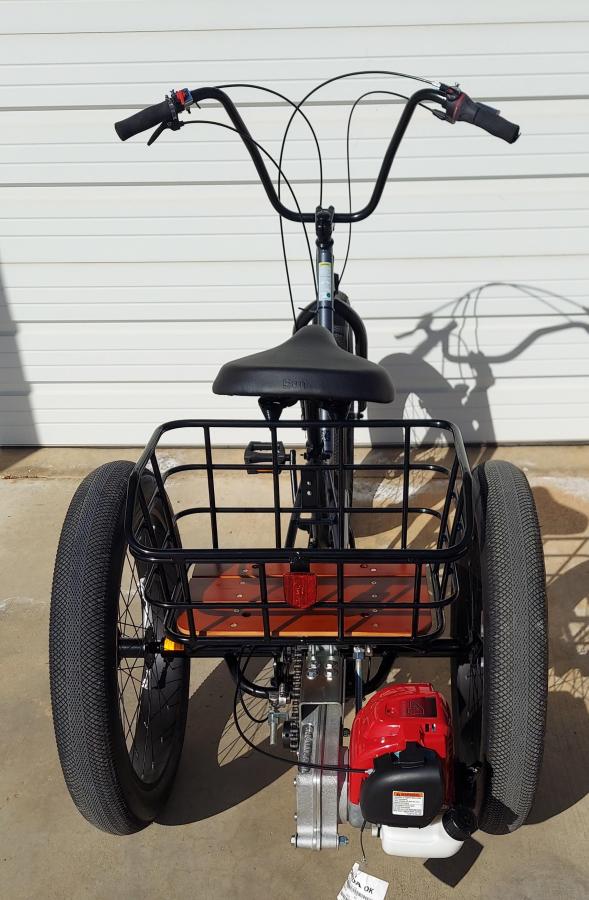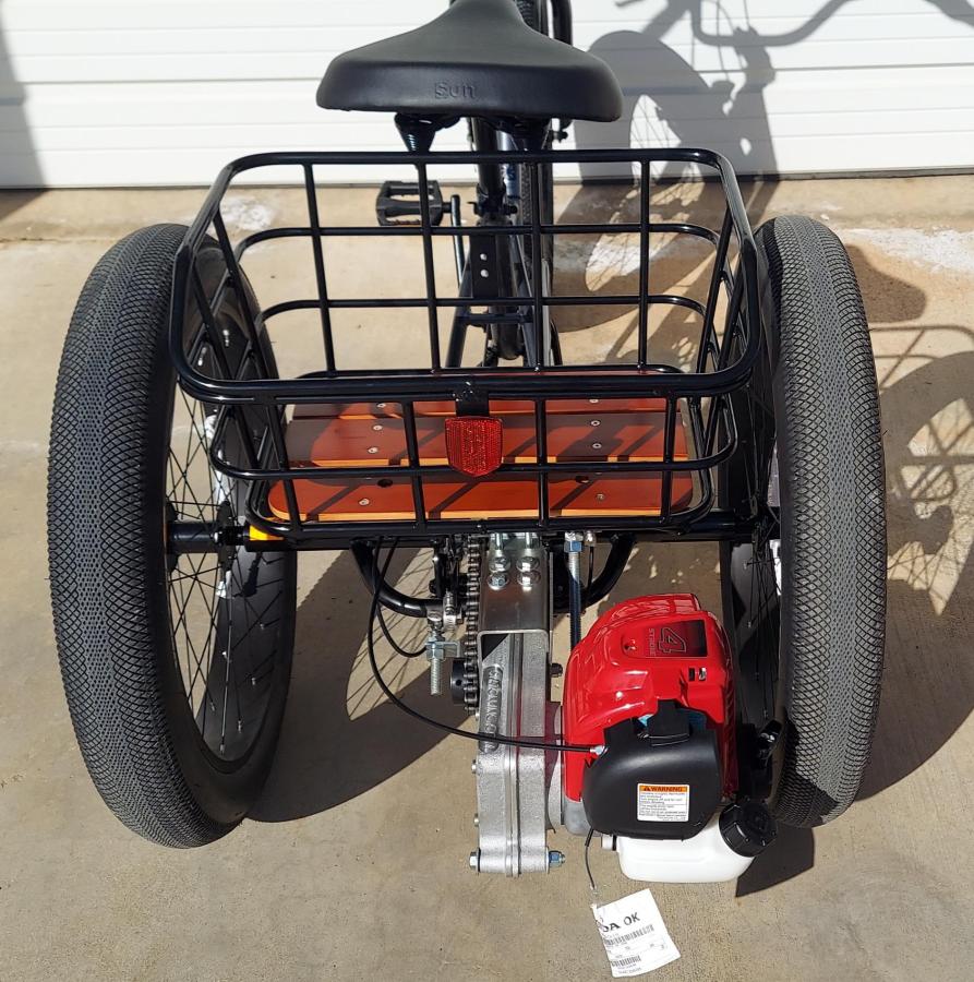 Honda GX35 four cycle engine with the complete gear & chain drive kit for the Sun Baja 7 speed Tricycle (trike is not included).
