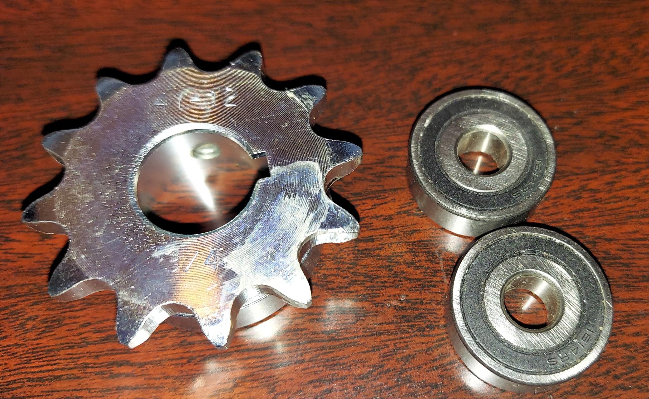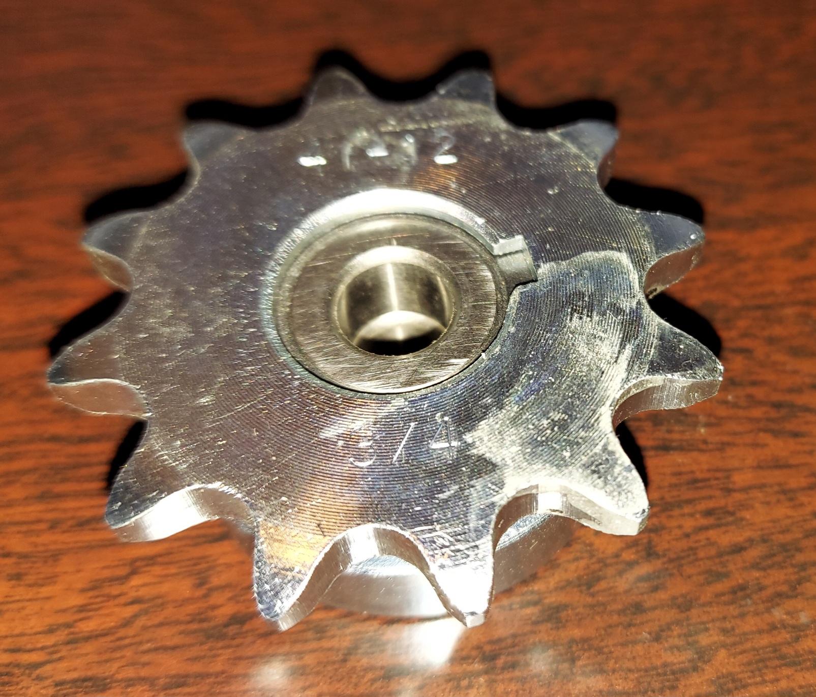41 / 40 BB 12 Tooth IDLER Sprocket 1/2" pitch x 1/4" wide teeth with cnc machined pocket for TWO 1.125" OD x .80".