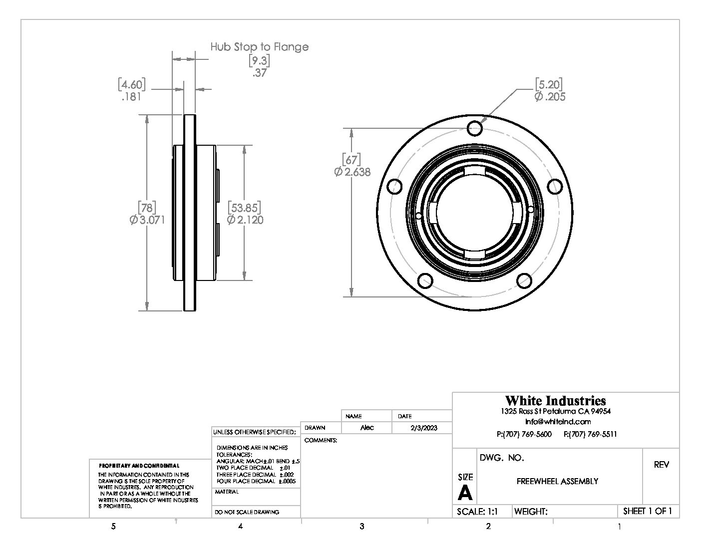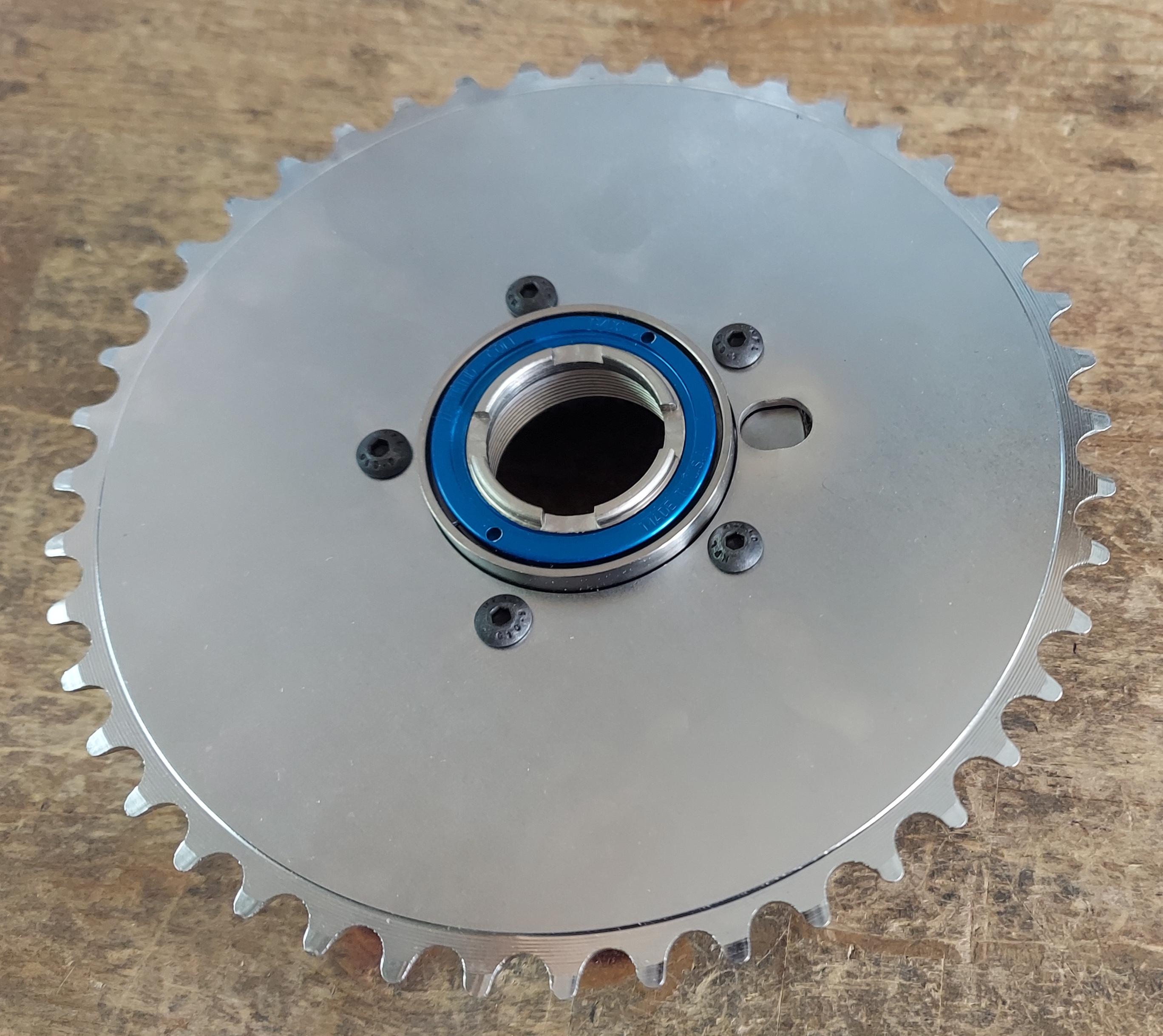 Designed for E-Bikes that unitize a “Bottom Bracket Drive” system where the freewheel mounts to the motor output shaft. This freewheel requires a 5-bolt 67mm BCD “cog” to be mounted to it.