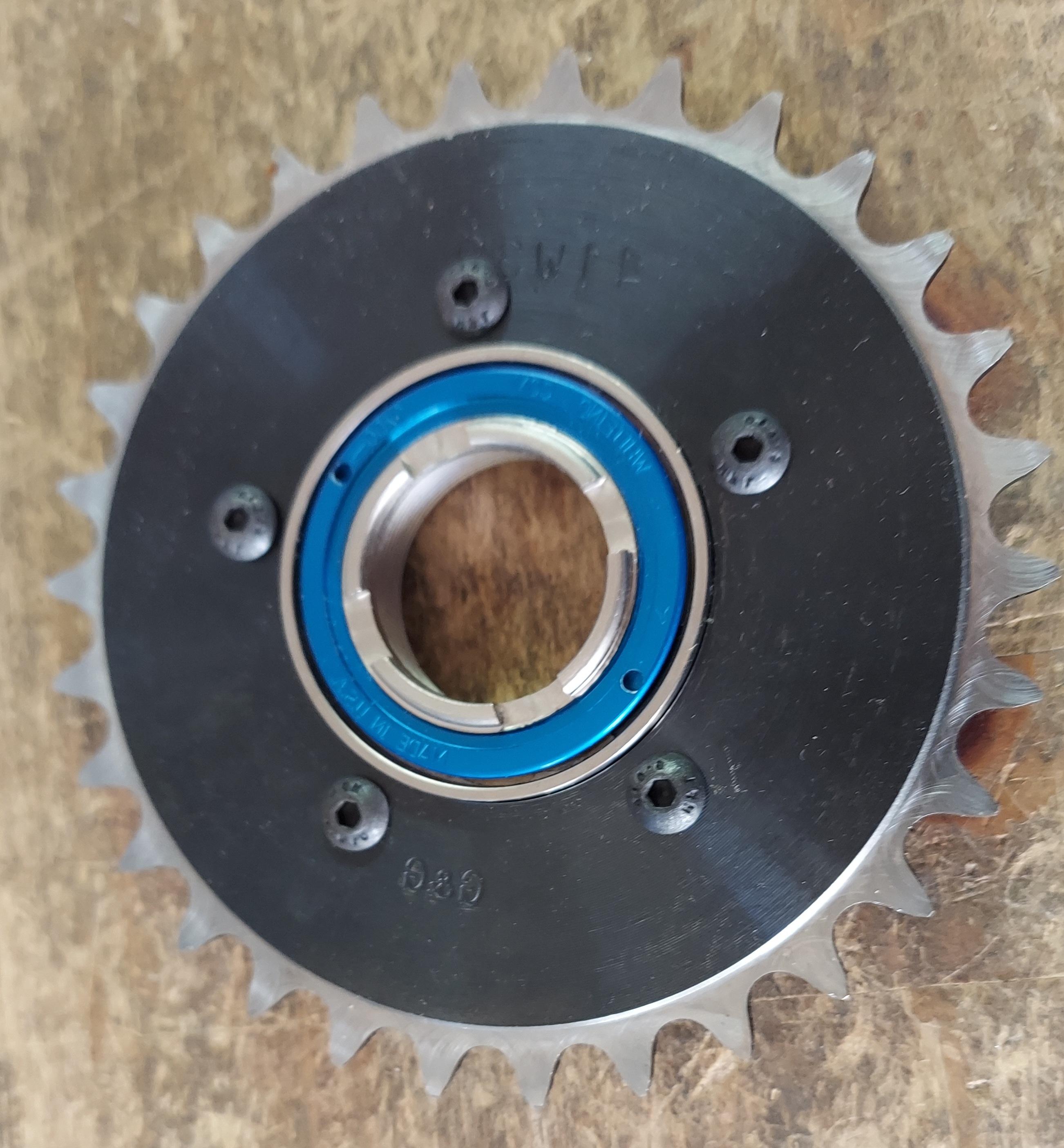 This flanged freewheel - sprag clutch allows you to attach a larger sprocket or pulley to make it freewheel.